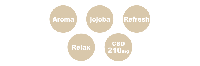 | ホホバ種子油、オレンジ果皮油、ベルガモット果実油、ニオイテンジクアオイ油、ダマスクバラ花油、オニサルビア油、カンナビジオール、メントール、バニリルブチル、ソルビン酸 |